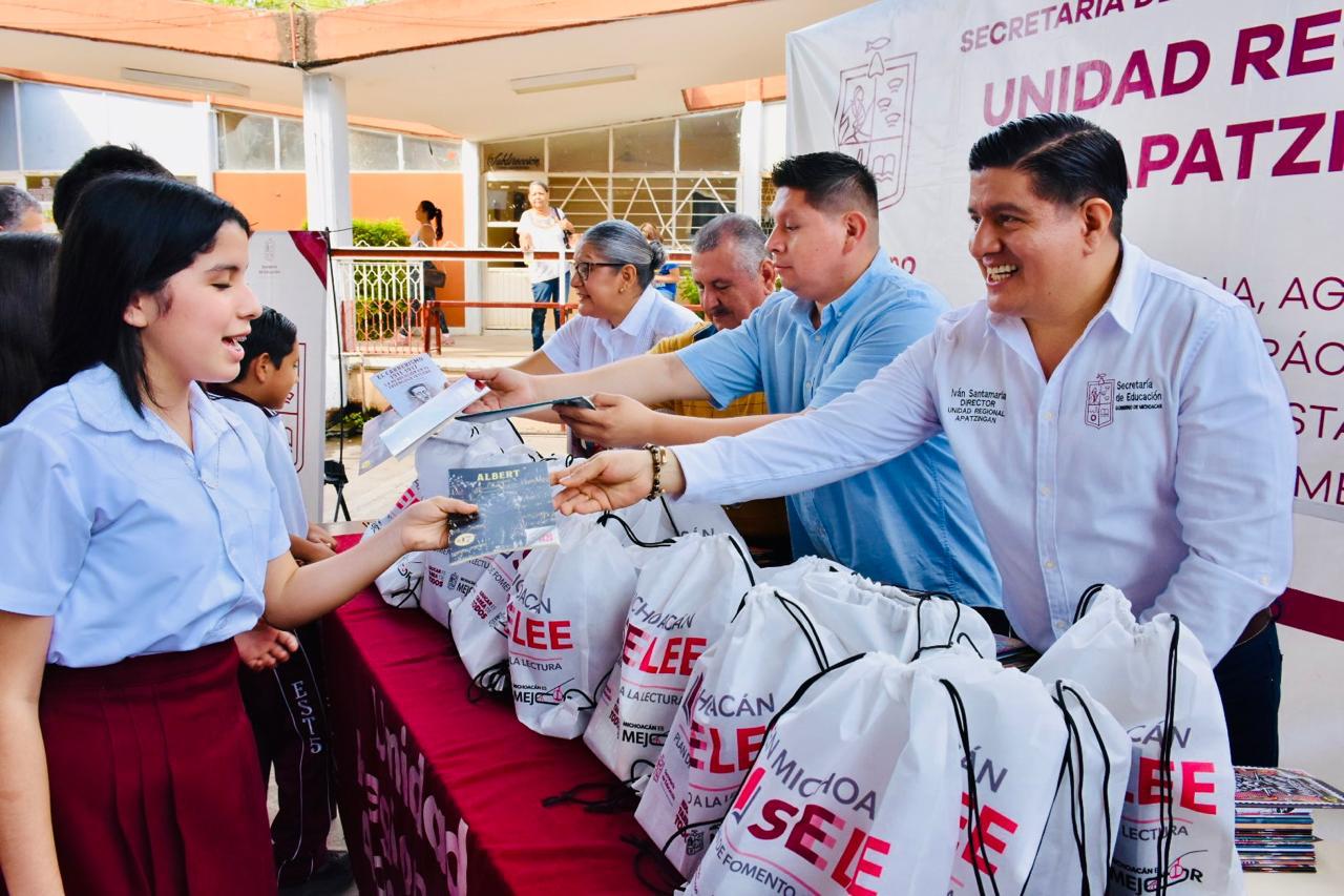 Apatzingán, Michoacán, 13 de junio de 2025.- El programa “En Michoacán Se Lee”, de la Secretaría de Educación del Estado (SEE), a cargo de Gaby Molina, marca una diferencia en la región de Tierra Caliente. La Secundaria Técnica 5 de Apatzingán fue sede del taller de lectura y creación literaria, donde participaron más de mil 300 estudiantes y se entregaron bibliotecas a docentes de 30 telesecundarias de la región, para generar un impacto global en 2 mil 500 alumnas y alumnos.