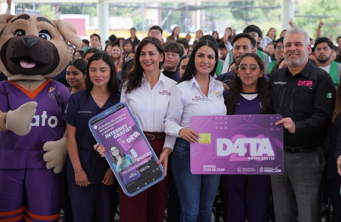 Morelia, Michoacán, 6 de marzo de 2026.- Como parte de un eje innovador para brindar justicia digital a estudiantes de nivel medio superior y superior de instituciones públicas, el gobierno de Alfredo Ramírez Bedolla impulsa el Programa Data Datos Gratis, promovido dentro del Plan Michoacán por la Paz y la Justicia, una herramienta que contribuye a combatir el abandono escolar y garantizar el derecho a la conectividad, destacó la secretaria de Educación, Gabriela Molina.